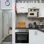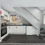 Deze woning heeft een complete keuken en biedt ook een magnetron, een waterkoker en een koelkast.
